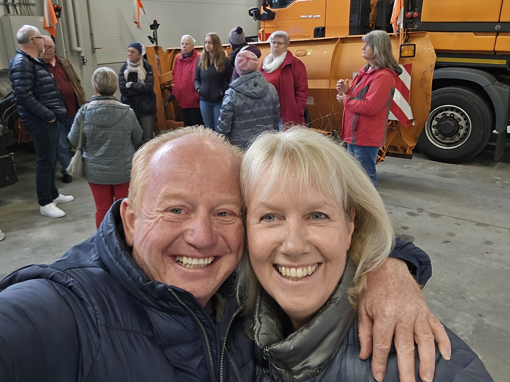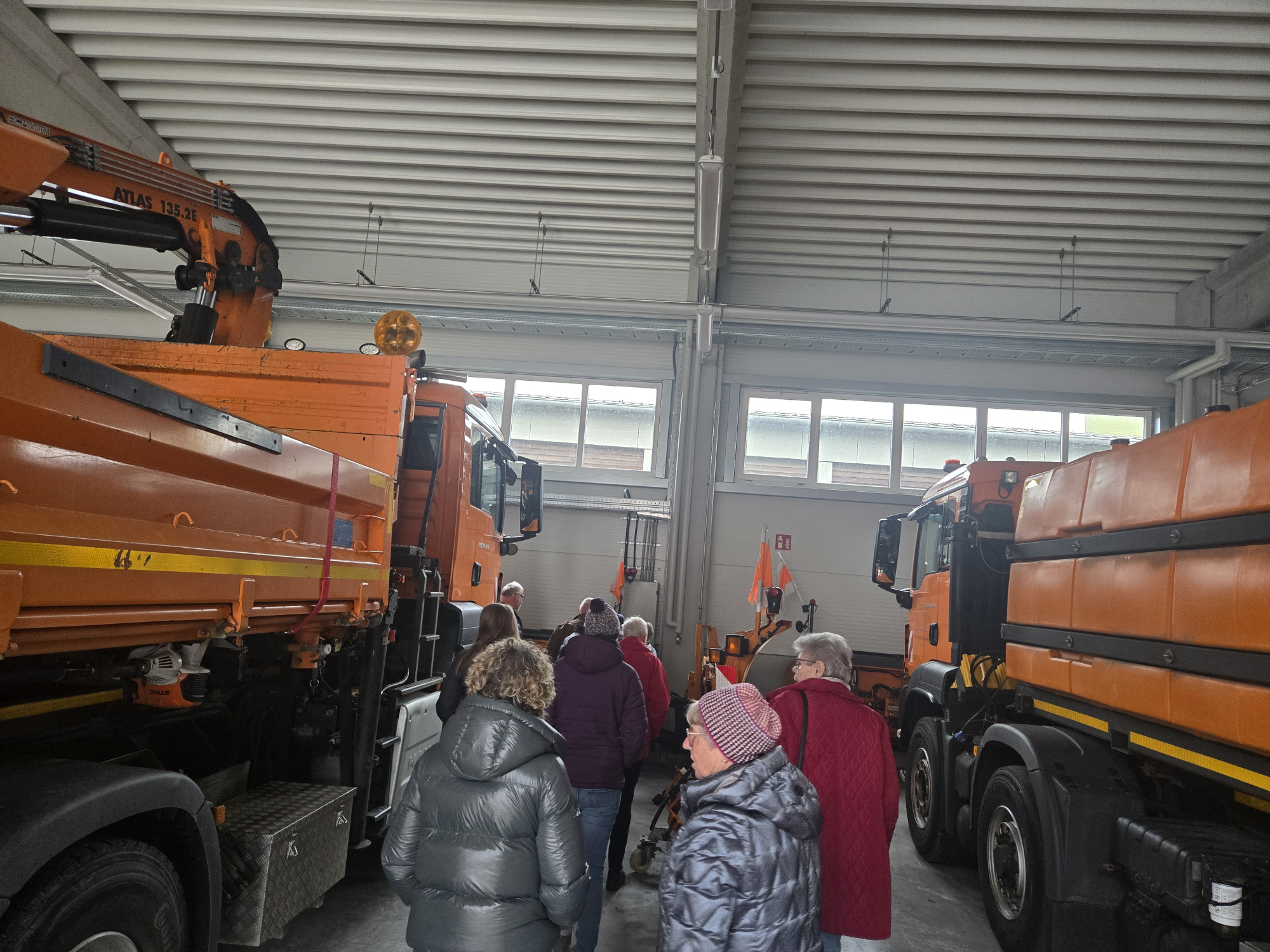 Tag 1 begann pünktlich um 8:00 Uhr mit der Abfahrt in Steinhöring. Bereits die erste Etappe hatte es in sich: Nach einem kurzen Stopp in Ampfing empfing uns Dirk mit frischen Butterbrezen und Kaffee. Dazu gab es eine exklusive Führung über das Gelände des Autobahnbauhofs, wo wir beeindruckende Einblicke in die Abläufe rund um den Betrieb und die Instandhaltung unserer Autobahnen erhielten. Beeindruckend, was dort tagtäglich geleistet wird, um unsere Straßen sicher und umweltfreundlich zu halten.