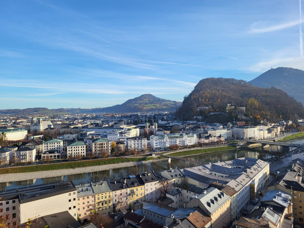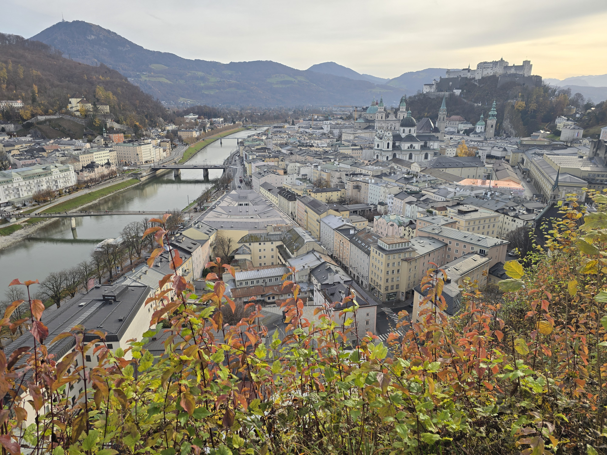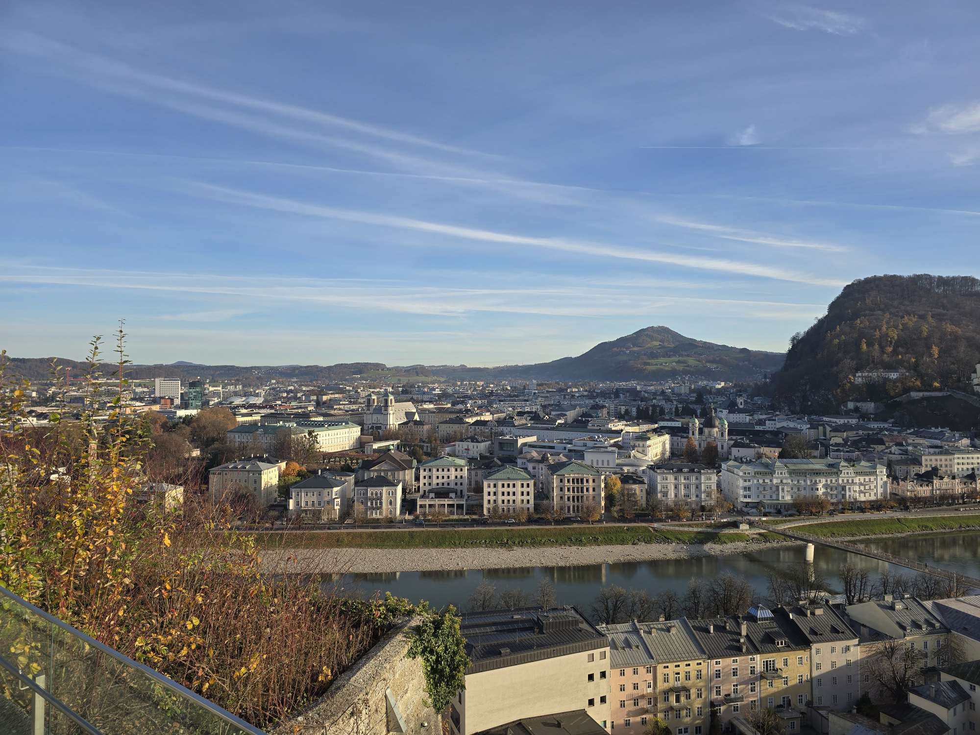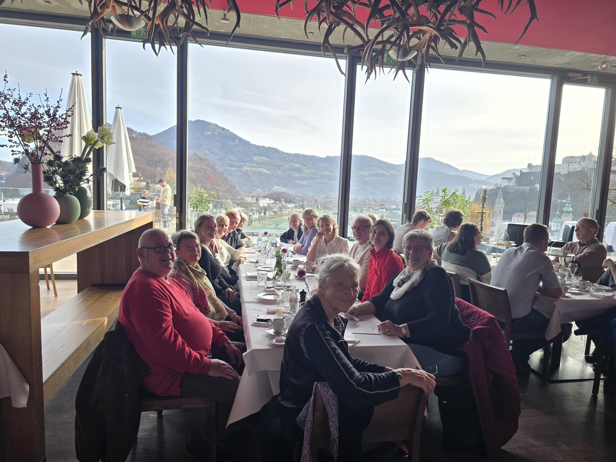 Der zweite Tag startete früh mit einem gemeinsamen Frühstück im Hotel. Um 8:30 Uhr machten wir uns auf den Weg zum Café M32 am Mönchsberg, einem echten Highlight: Von hier hat man einen einzigartigen Rundblick über ganz Salzburg – Burg, Altstadt, Gebirge inklusive. Bei Cappuccino oder sogar einem Glas Prosecco genossen viele den besonderen Moment.